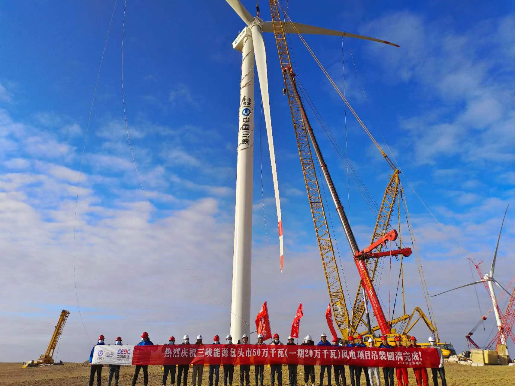 三峡能源内蒙古包头市可再生能源综合应用示范区1号50万千瓦(一期20万千瓦)共计31台风机全部吊装完成,二期46台风机浇筑已完成37台。项目部副经理,杨峰感慨,2021年风电、光伏等新能源发电量只占全年总发电量的11.8%,还有很大的提升空间,如今新能源产业顺应时代需求,正是投资风口,前途一片光明。作为新能源行业的建设者,大有可为,作为一名共产党员,将竭尽所能,从陆地到海洋,从平原到高山,从湖底到沙漠,从南疆到北国,为我国新能源产业发展贡献一份力量。