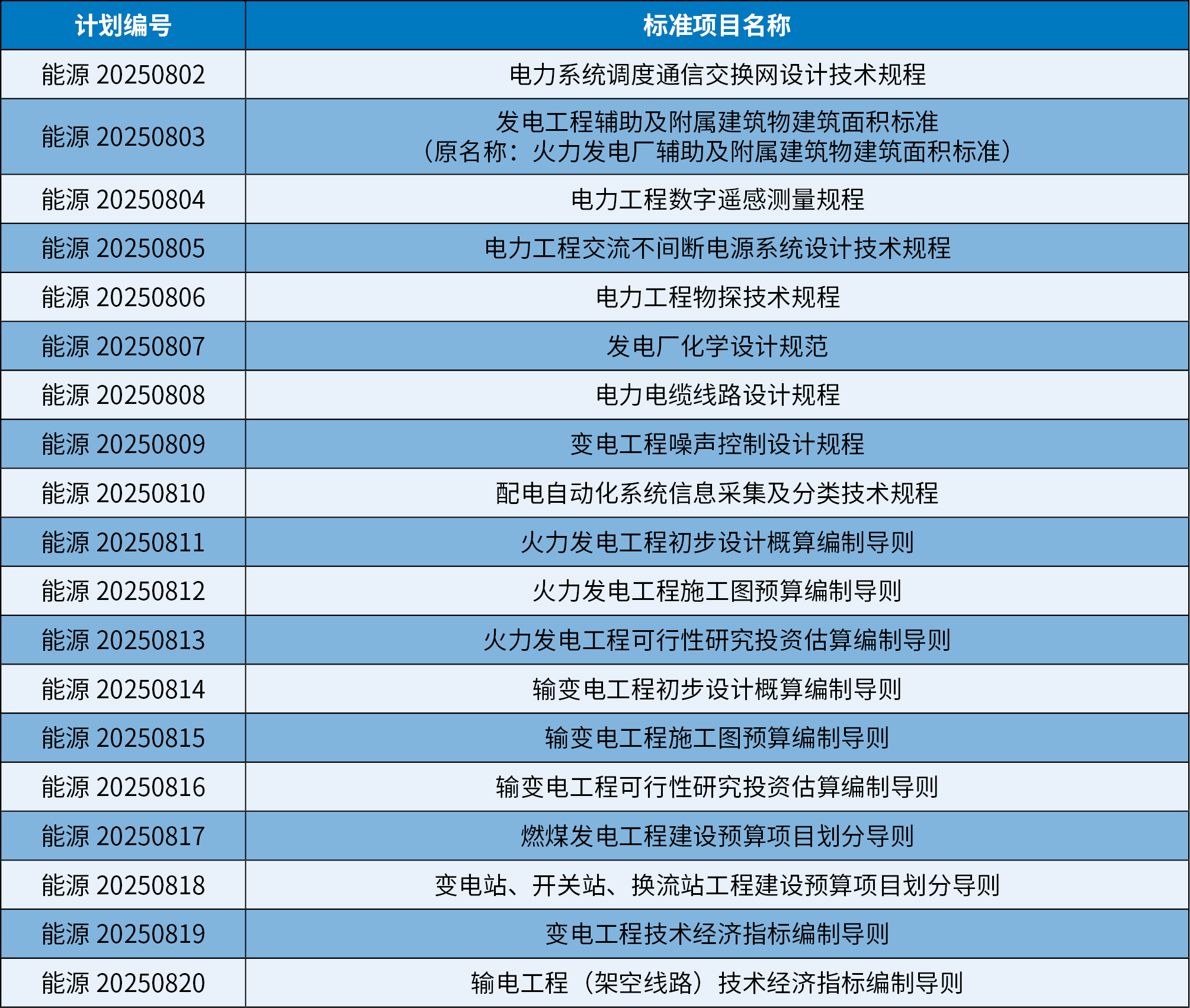 news9月5日,国家能源局印发了《国家能源局综合司关于下达2025年能源领域行业标准制修订计划及外文版翻译计划的通知》(国能综通科技〔2025〕137号),批准了由电力规划设计总院(以下简称电规总院)管理的《电力规划方案市场校核技术导则》等55项能源领域行业标准制修定计划,内容涉及新型电力系统,电力系统规划、发电及电网设计,火电及电网工程技术经济,能源电力融合、电力REITs、电力数据资产及电力绿色低碳等多个领域。相关标准的编写发布将为传统产业结构优化升级提供必要的规范和指引,推动传统产业向智能化、绿色化、信息化的高附加值模式转变,为能源电力行业高质量发展奠定坚实基础。电规总院将进一步加强标准制修订工作,以服务国家战略为牵引,强化标准开放引领,以推动未来产业发展。